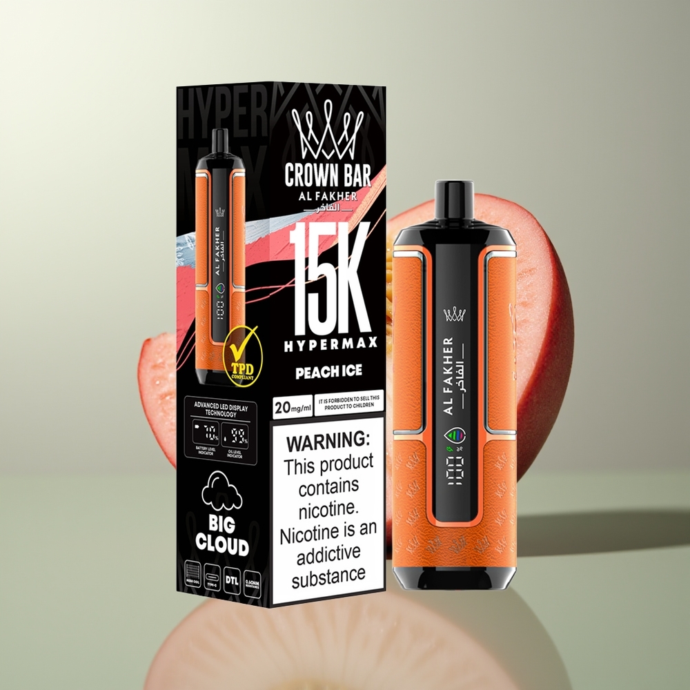 Al Fakher Crown Bar 15K Großhandel Deutschland Pfirsich Eis Hypermax Wegwerf Vape Kit 22ml 600mAh Typ-C Port DTL 6mg/ml Kompakt Tragbar Leicht