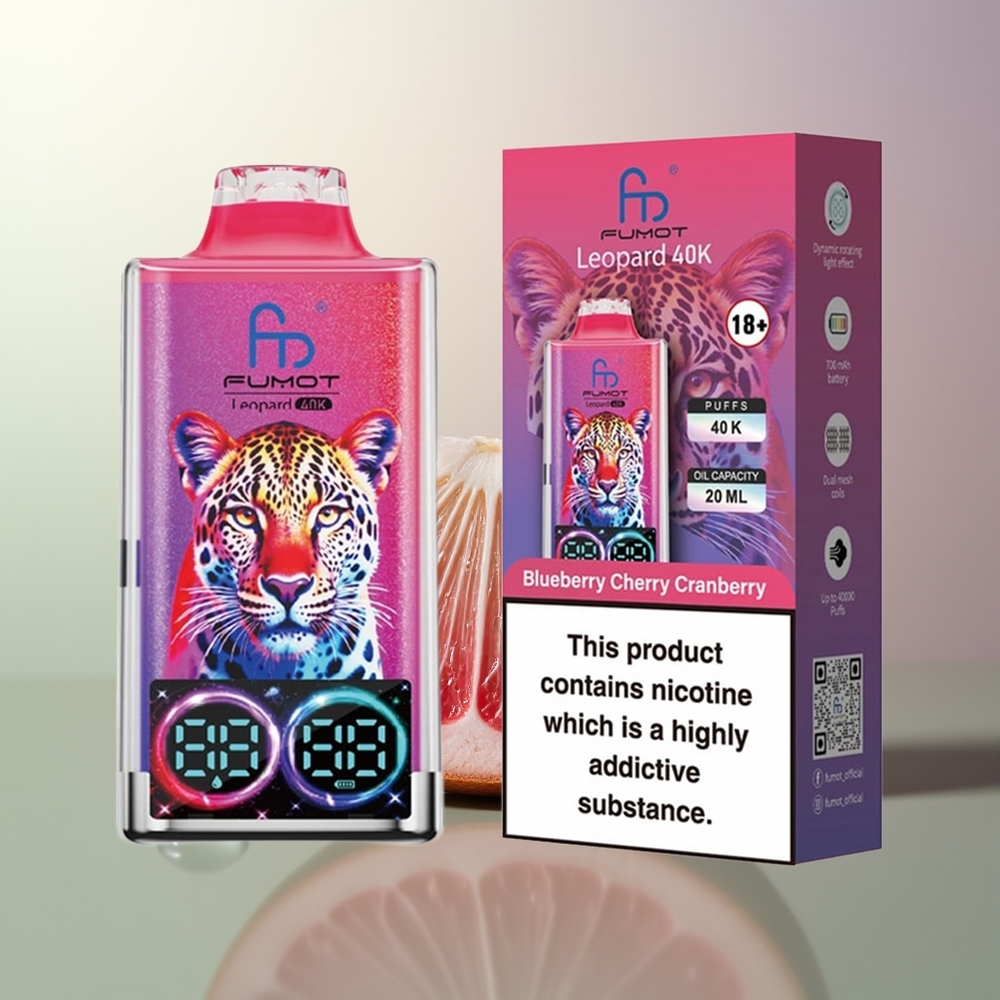 Fumot Leopard 40K Puffs Großhandel Deutschland Blaubeere Kirsche Preiselbeere 0% 5% Nicotine 700mAh Dual Mesh Typ-C Ladung Digitale Ölanzeige