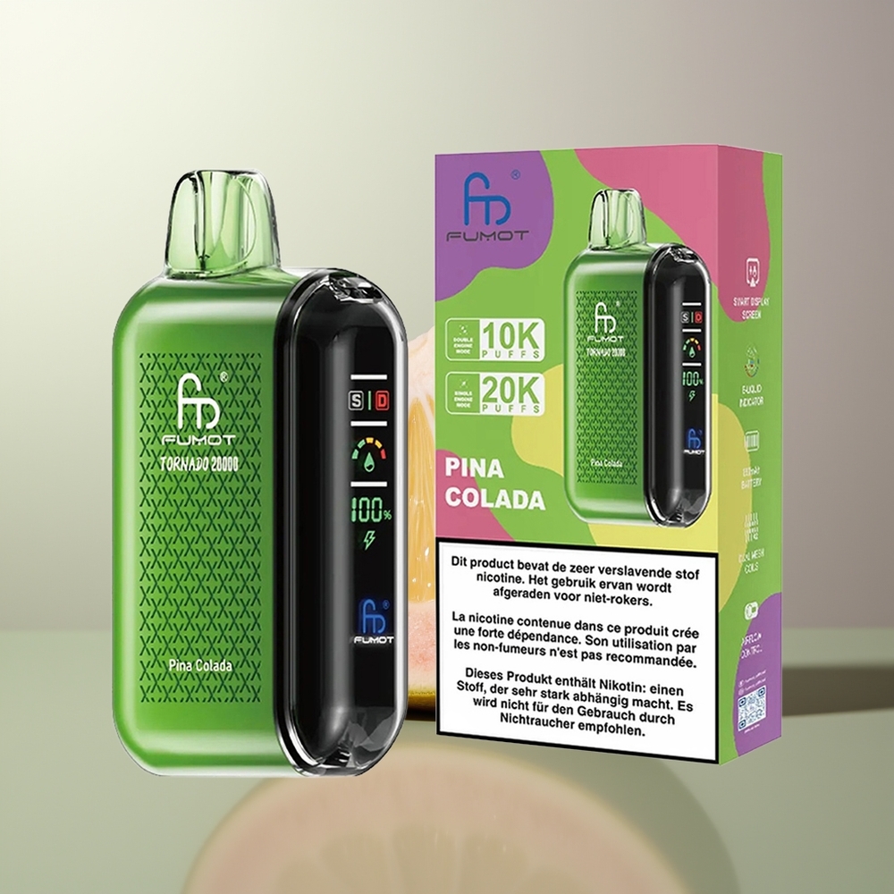Fumot Tornado 20000 Puffs Großhandel Deutschland Pina Colada Dual Mesh Coil 20ml 850mAh Smart Display Luftstromkontrolle 2% Nikotin Single Engine Mode