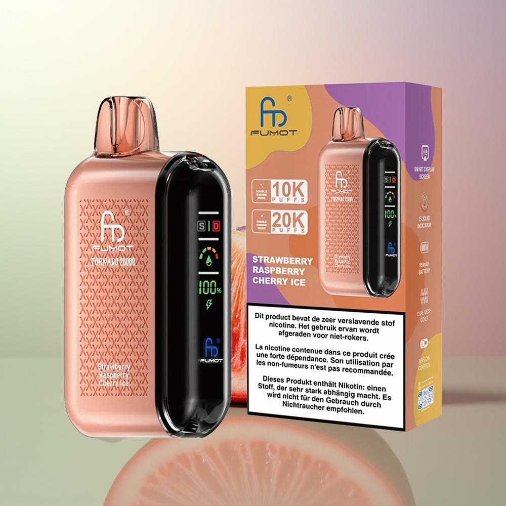 Fumot Tornado 20000 Züge Großhandel Deutschland Erdbeere Himbeere Kirsche Eis Dual Mesh Coil 20ml E-Liquid 850mAh Akku Smart Display Luftstromkontrolle 2% Nikotin Single Engine Mode