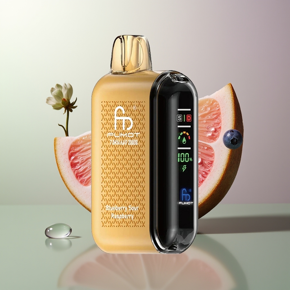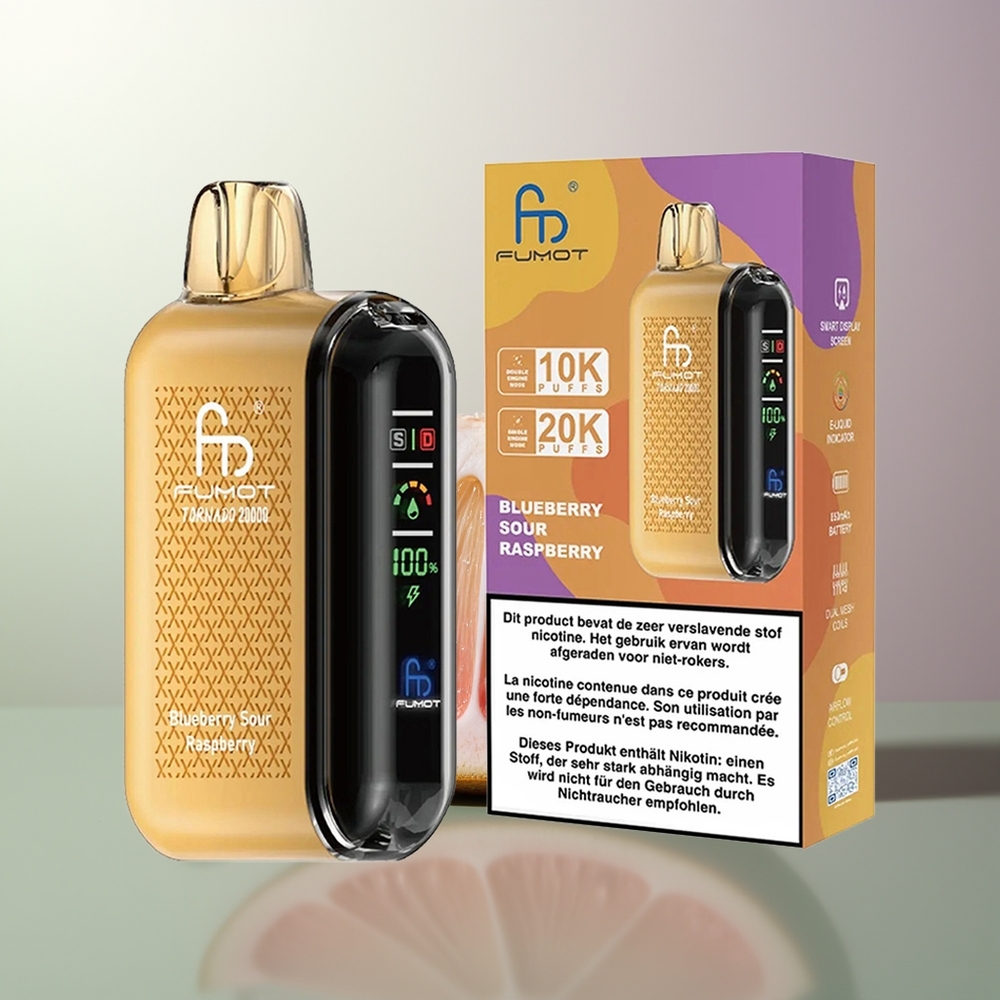 Fumot Tornado 20000 Züge Großhandel Deutschland Heidelbeere-Sauer-Himbeere Dual Mesh Coil 20ml 850mAh Smart Display Airflow Control 2% Nikotin Single Engine Mode