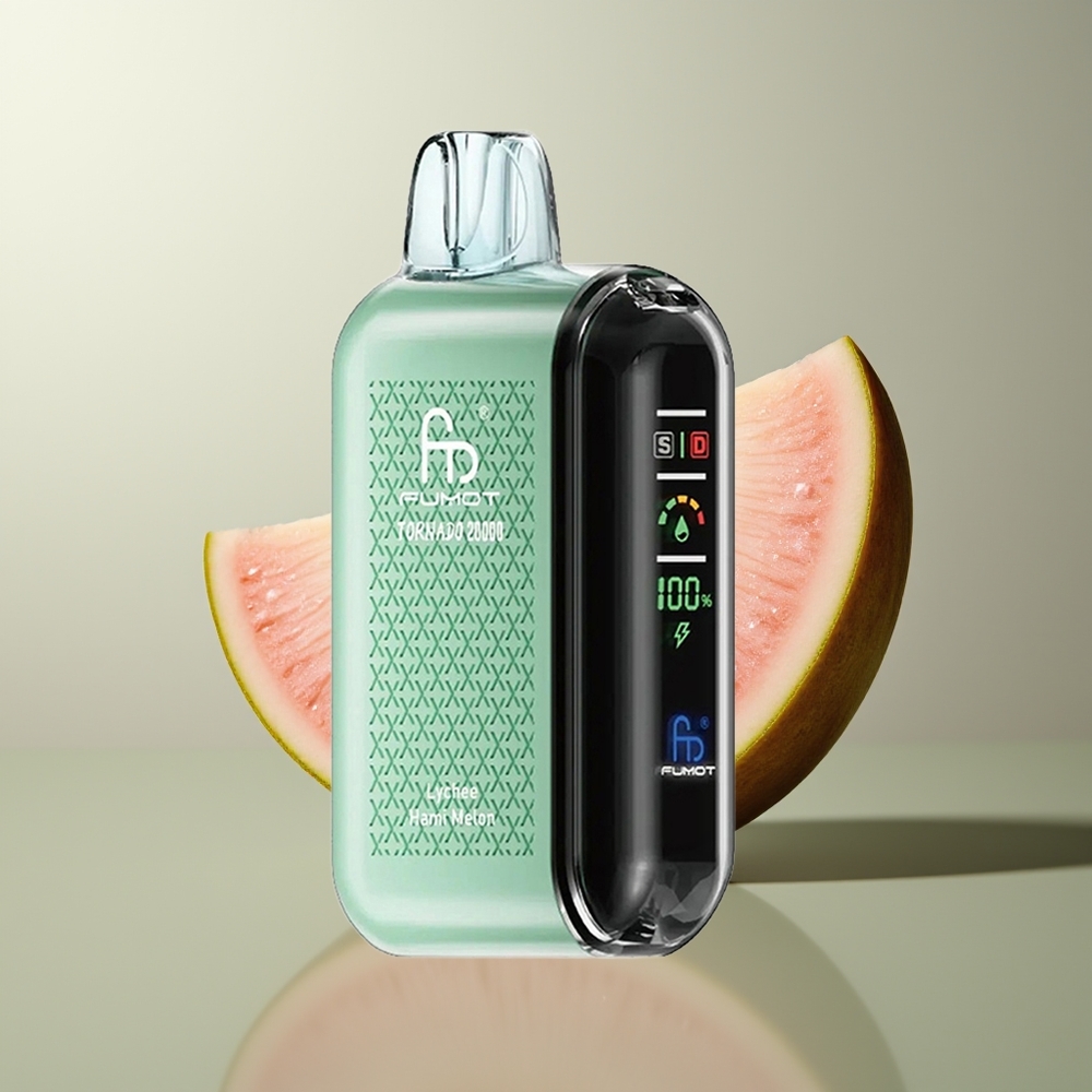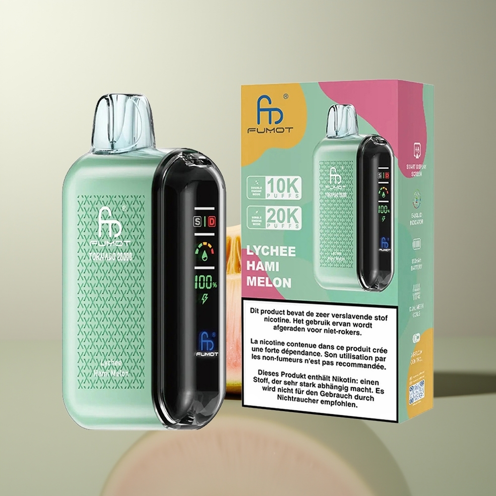 Fumot Tornado 20000 Züge Großhandel Deutschland Litschi-Honigmelone Dual Mesh Coil 20ml 850mAh Smart Display Luftstromkontrolle 2% Nikotin Single Engine Mode