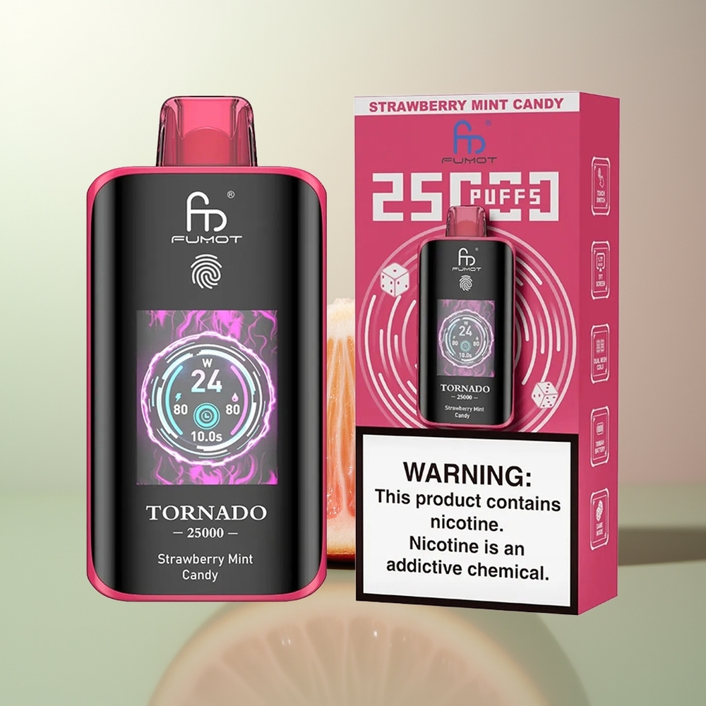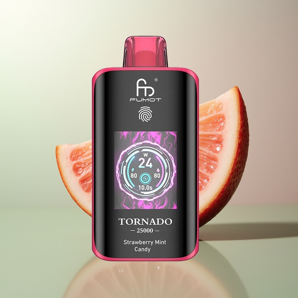 Fumot Tornado 25000 Puffs Großhandel Deutschland Erdbeer Minze Bonbon HD Bildschirm 700mAh Akku 20ml Typ-C Ladung