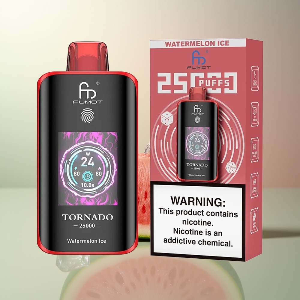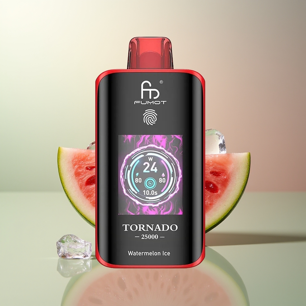 Fumot Tornado 25000 Züge Großhandel Deutschland Wassermelone Eis HD Bildschirm 700mAh Akku 20ml Flüssigkeit Typ-C Ladeanschluss