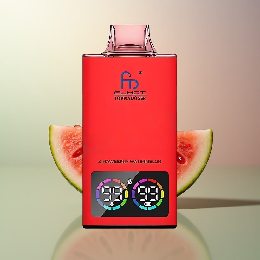 Fumot Tornado 35000 Großhandel Deutschland Erdbeer Wassermelone Dual Mesh Coil RGB Lichter 15ml E-Liquid 700 MAH USB-C Schnellladung