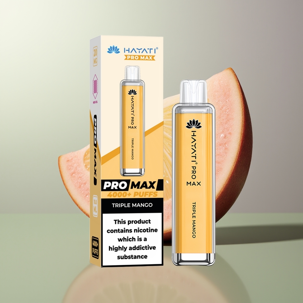 Hayati Pro Max 4000 Züge Großhandel Deutschland Dreifach Mango 2% 5% Nikotin 1400mAh wiederaufladbar TPD-konform LED Licht Crystal Optik
