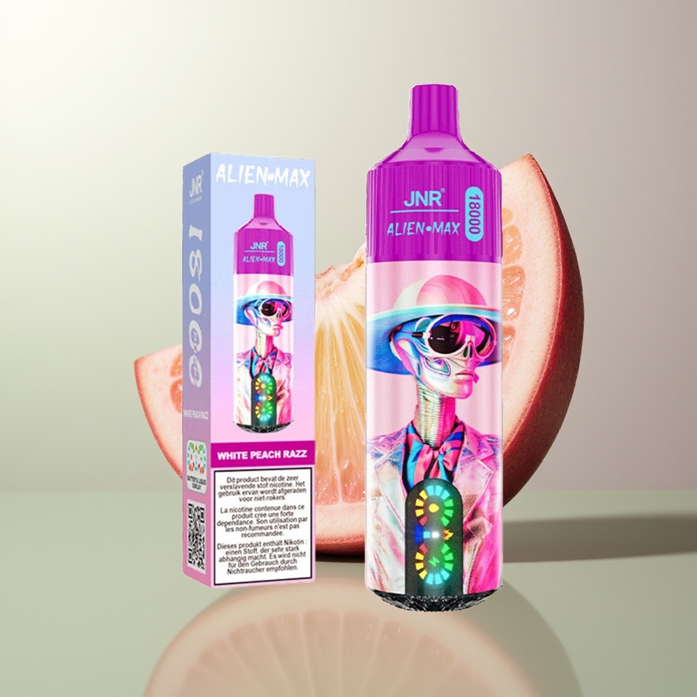 JNR Alien Max 18000 Großhandel Deutschland Weißer Pfirsich Himbeere Smart LED Display Dual Mesh Coil 850mAh 28ml Typ-C Schnellladung