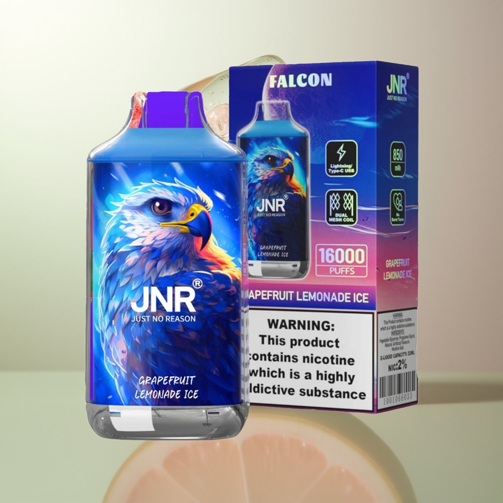 JNR Falcon 16000 Puffs Großhandel Deutschland Grapefruit Zitronenlimonade Eis 850mAh 22ml Dual Mesh Coil Typ C & Lightning Smart LED Display 0% 2%