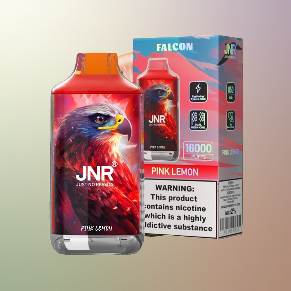 JNR Falcon 16000 Puffs Großhandel Deutschland Rosa Zitrone 850 mAh 22ml Dual Mesh Coil Typ C & Lightning Smart LED Display 0% 2%