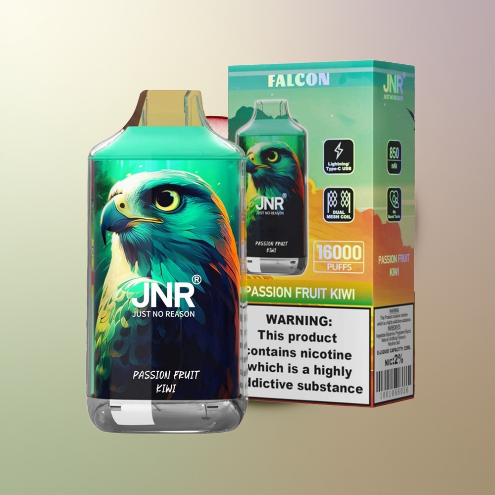 JNR Falcon 16000 Züge Großhandel Deutschland Passionsfrucht Kiwi 850 mAh 22ml Dual Mesh Coil Typ C & Lightning Smart LED Display 0% 2%