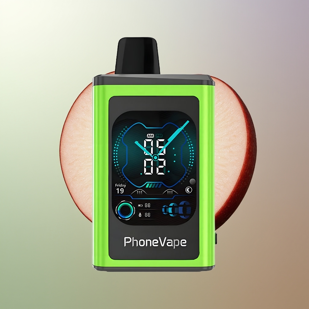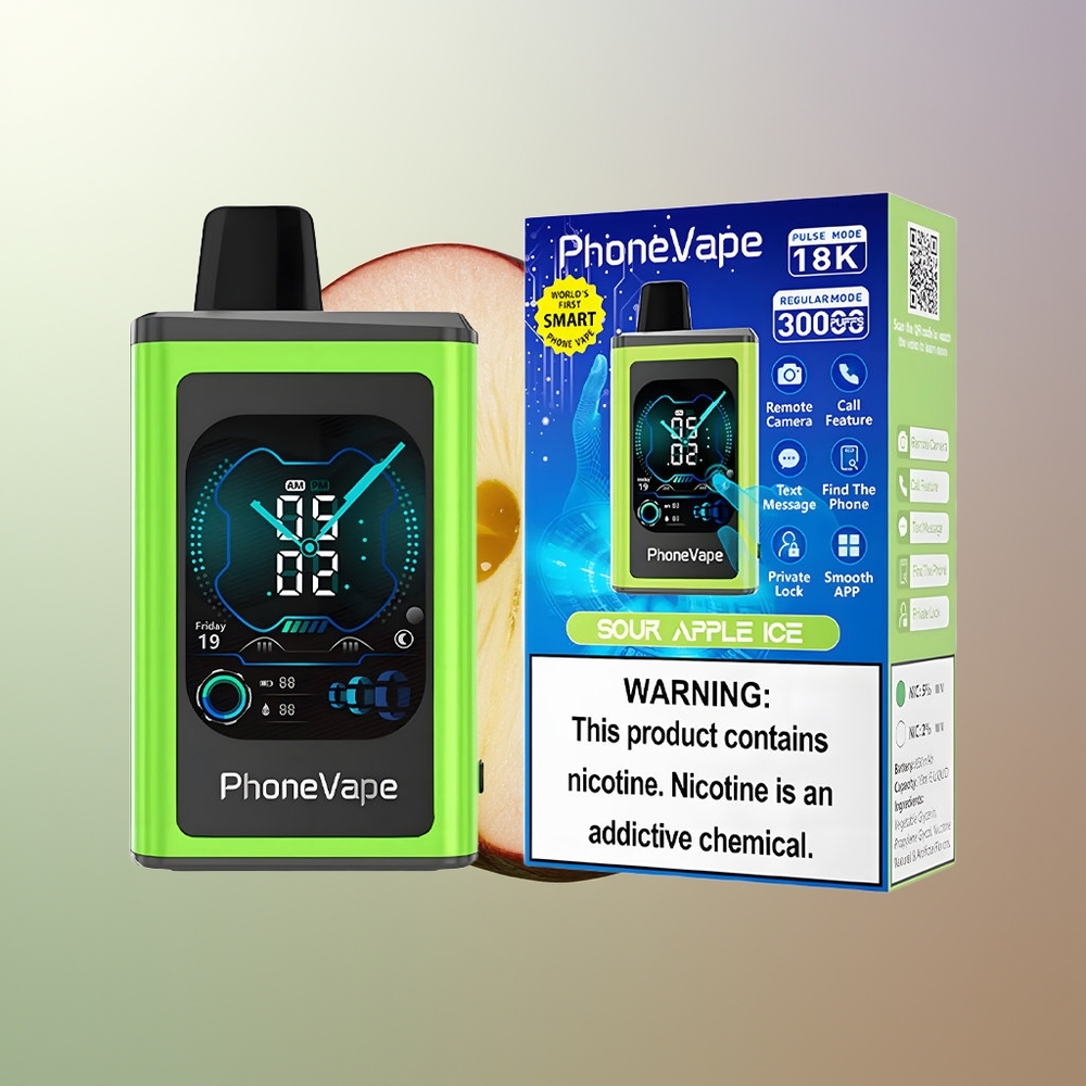 JNR PhoneVape 30000 Züge Großhandel Deutschland Sauer Apfel Eis Typ-C Aufladbar Turbo Modus Einstellbarer Luftstrom App-Gesteuert Anruf und Text Fernkamera Sperrmodus Vollbildschirm Nikotinstärke 2% 5%