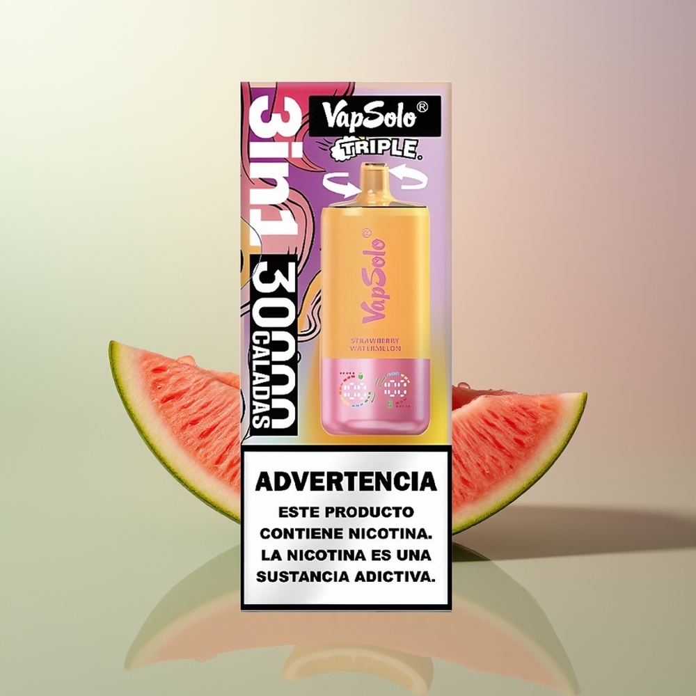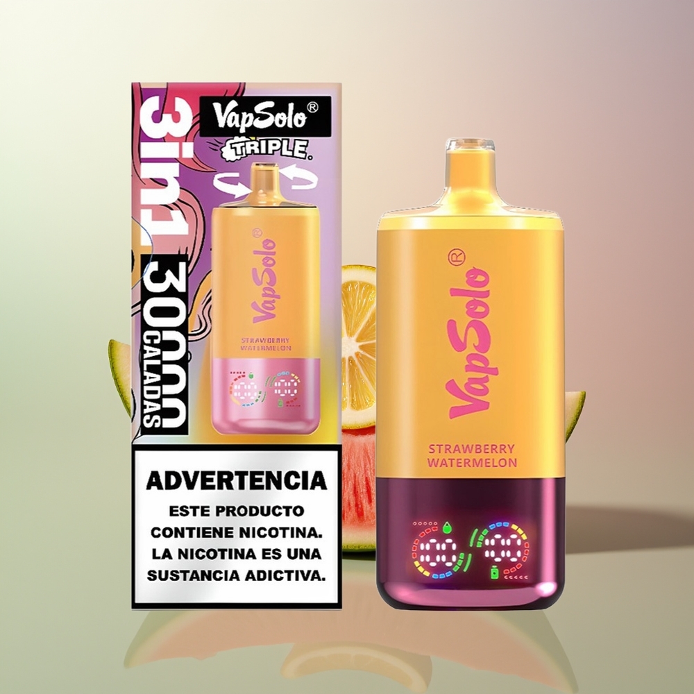 Vapsolo Triple 30000 Puffs Großhandel Deutschland Erdbeer-Wassermelone & Zitrone-Pfirsich 40ml 3-Tank Typ-C